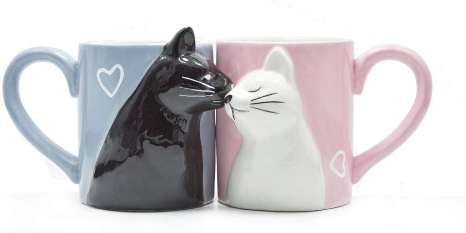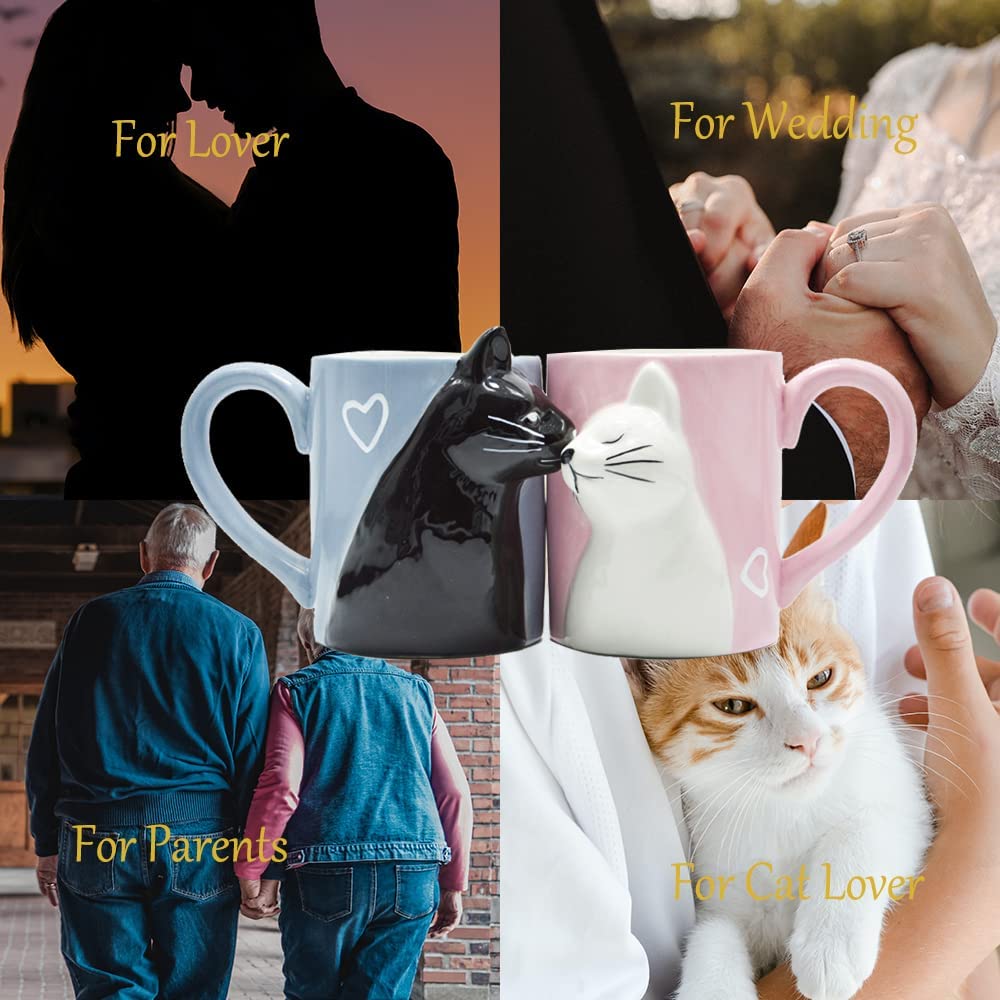 Kiss Cat Coffee Couple Mug set, Unique Funny Tea Ceramic Cup Set for Bride and Groom, Matching Gift For Birthday, Anniversary, Wedding, Engagement Valentines Day Girlfriend Wife (Cat mug)