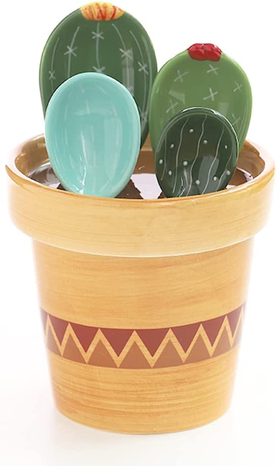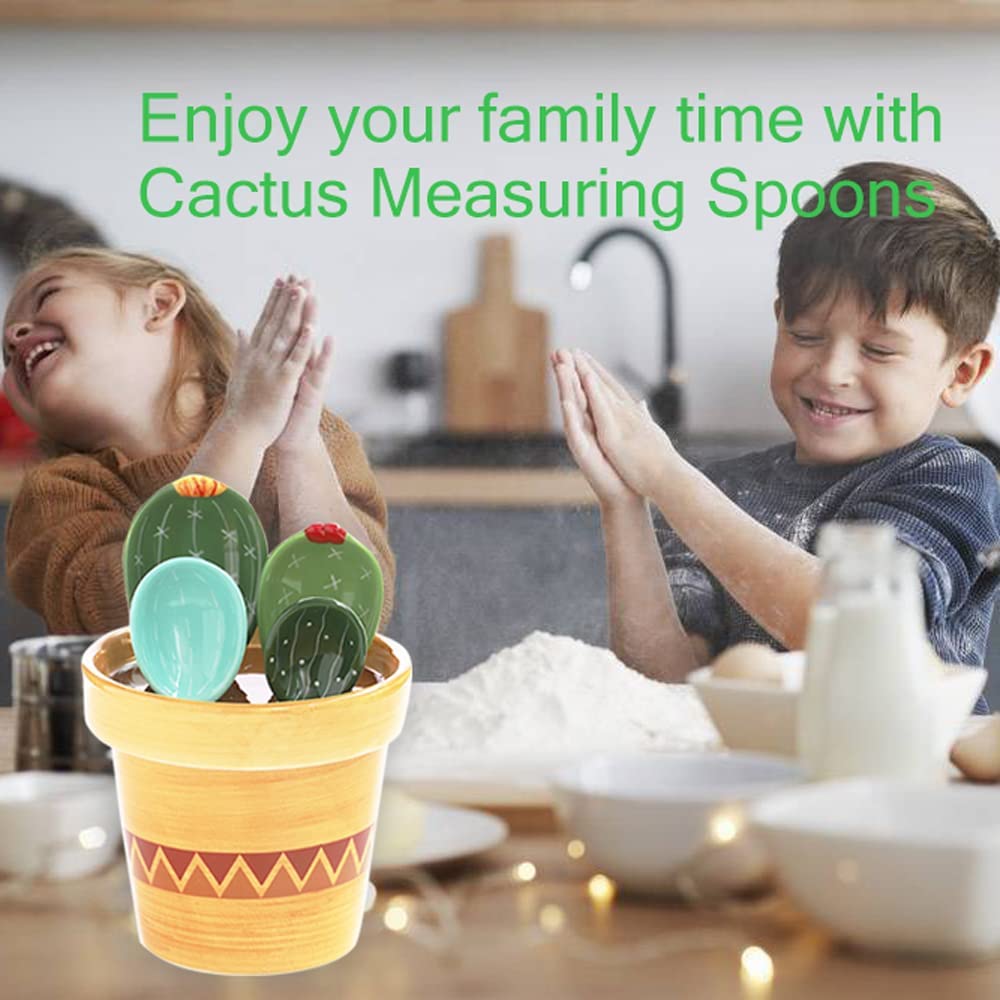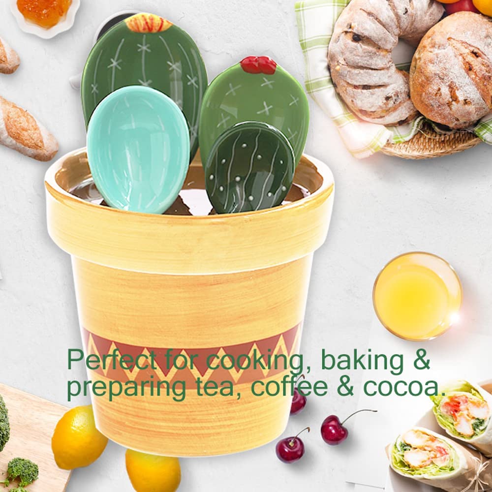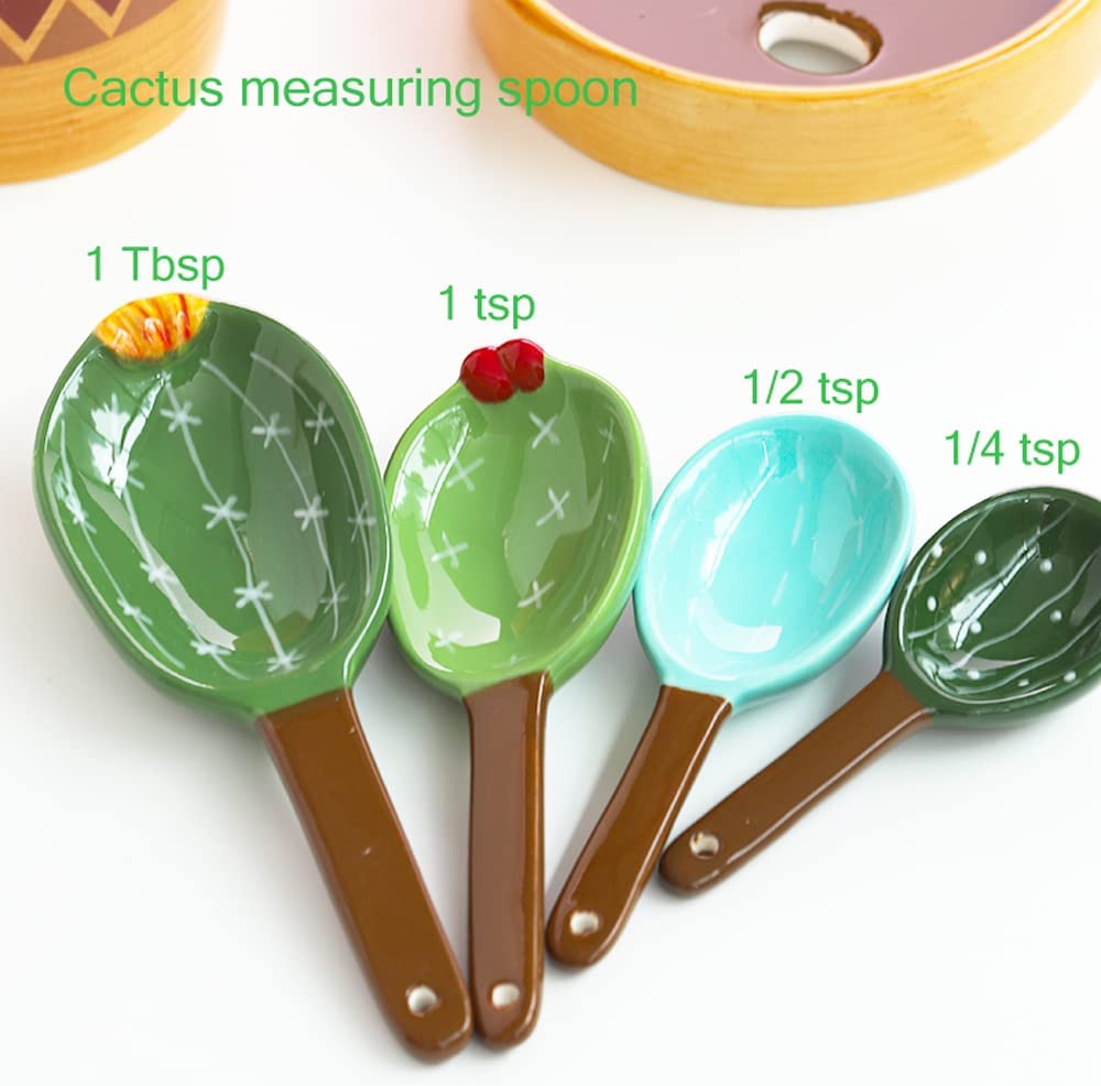 Durable Ceramic and Cute Design: Thick, durable, lead-free ceramic is dishwasher safe and has no fade when used.You can use the novelty cactus small measuring spoons in everyday life.
