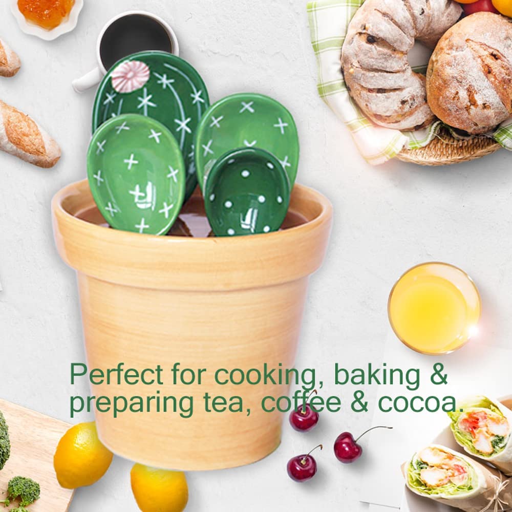 - Durable Ceramic and Cute Design: Thick, durable, lead-free ceramic is dishwasher safe and has no fade when used.You can use the novelty cactus small measuring spoons in everyday life.